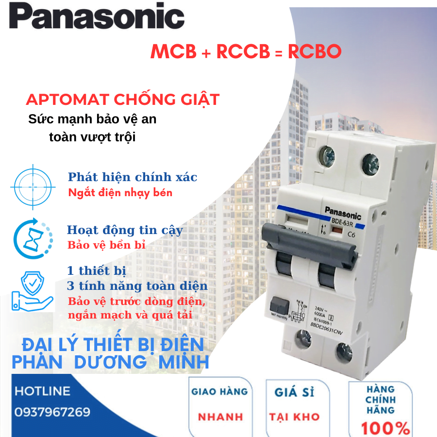 Liên hệ mua aptomat chống giật panasonic RCBO BBDE20631CNV 2P 6A tại Đại Lý Phan Dương Minh