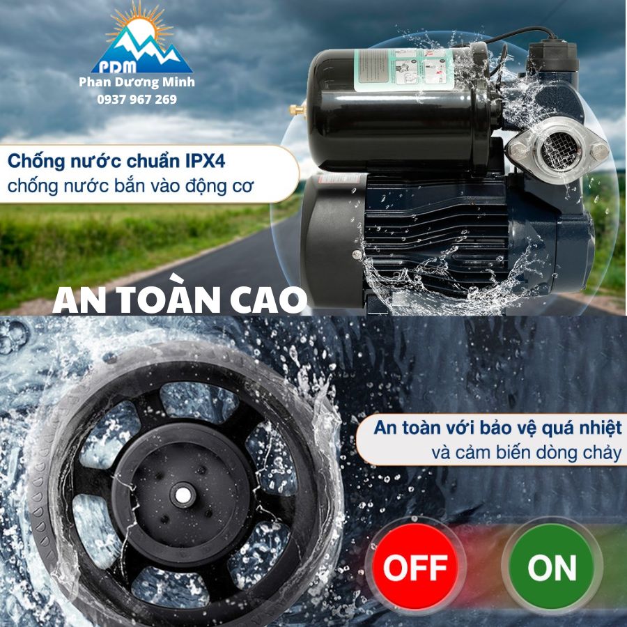Máy bơm nước gia đình Nanoco có tích hợp bảo vệ quá nhiệt. Giúp bảo vệ động cơ và mạch điện không bị quá tải khi hoạt động trong thời gian dài. Cảm biến dòng chảy: bảo vệ phốt nước và động cơ khỏi hư hỏng. Đạt chuẩn IPX4: chống nước tốt, tăng độ bền máy