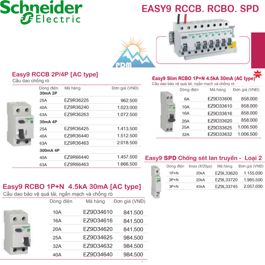 Bảng giá aptomat EZ9D33620 Schneider RCBO 1P+N 20A