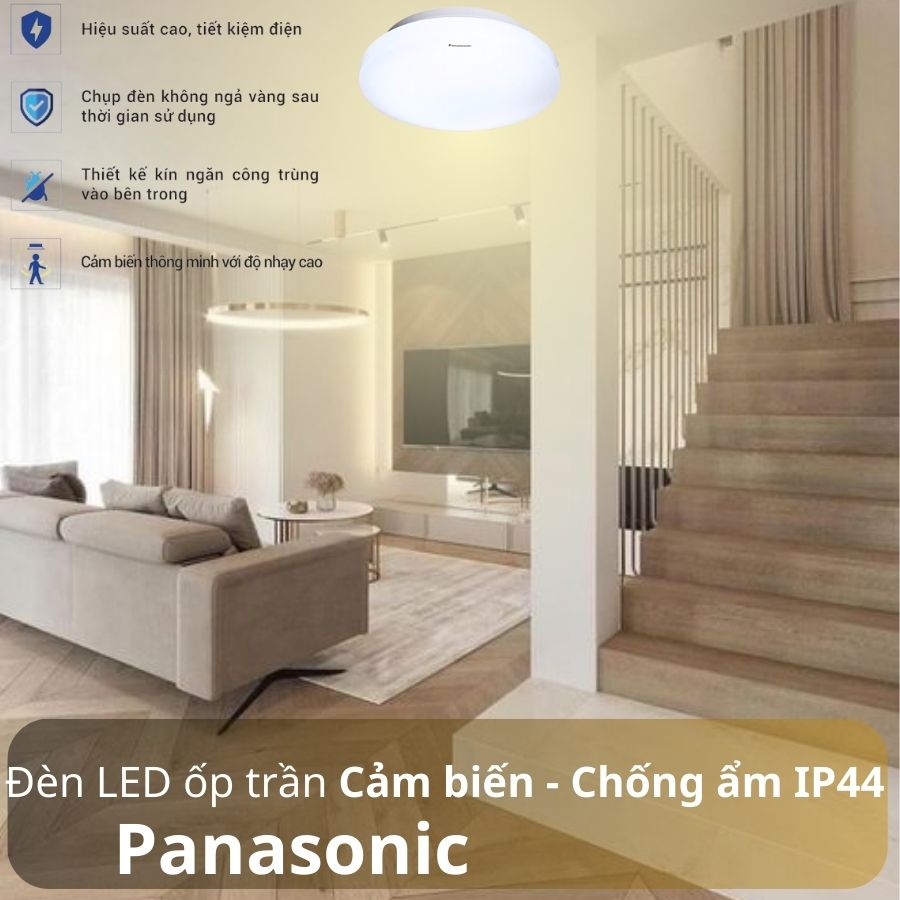 Giá đèn ốp trần cảm biến, chống ẩm và đổi màu Panasonic