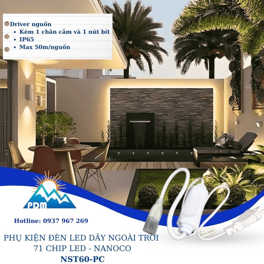 Nguồn LED dây Nanoco led dây ngoài trời NST60-PC là phụ kiện không thể thiếu. Hỗ trở lắp đặt đèn 60 72 chip LED ngoài trời. Trang trí tinh tế cho không gian ngoại thất của bạn. Hiện đang giảm giá sốc